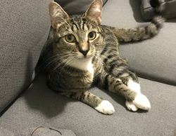 Grover has adjusted very well to his new home. His family reports that his is very sweet and gets along great with their other cat.