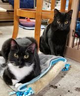 These two siblings were adopted together and are loving their new home. Their adopter says they are sweet and playful.