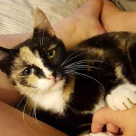 Serena was an emergency re-homing from a bad situation. It was a rocky start with her new owner, as Serena was very scared and needed time to decompress. Now she has settled in, loves to be pet and even headbutts!