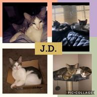 J.D. aka Lumos has settled in beautifully with his new family. He has helped to bring their other kitty out of his shell and they are so happy to have him.