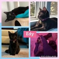 Edy (now Nova) is very happy in her new home, with 2 dogs and 2 other kittens. They are one big happy family!