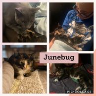 Junebug, now Gizmo, is doing very well with her new family that includes two children and another cat!